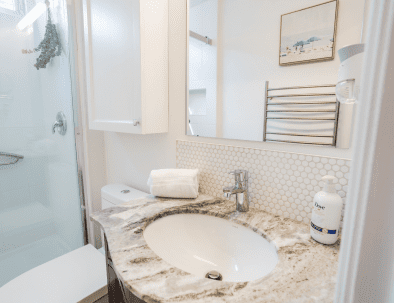 The Master bedroom has a private bathroom. 2 Private bedrooms on the lower level have their own private bathroom with a tub.