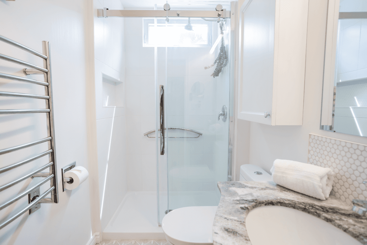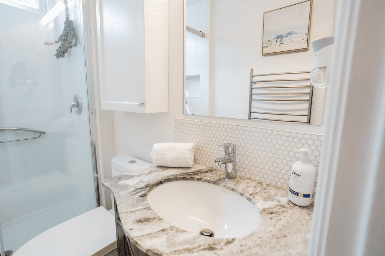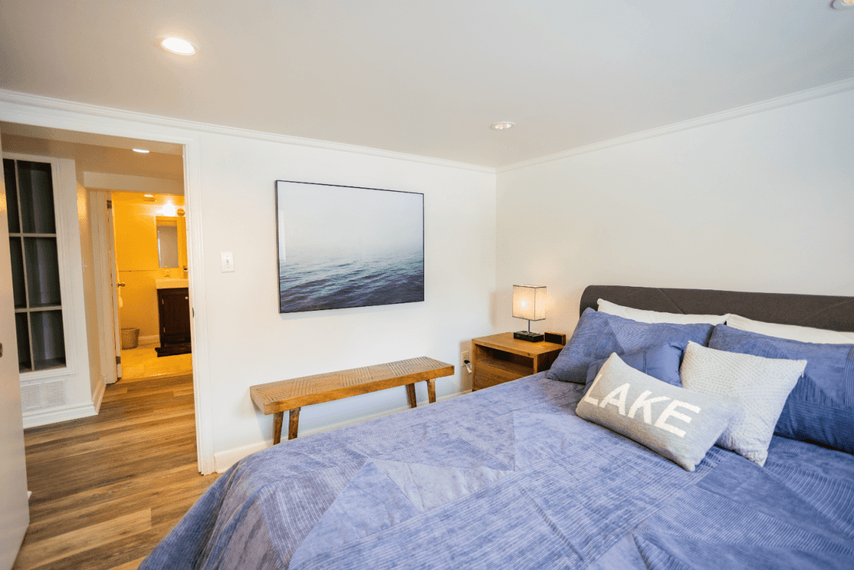 The Master bedroom has a private bathroom. 2 Private bedrooms on the lower level have their own private bathroom with a tub.